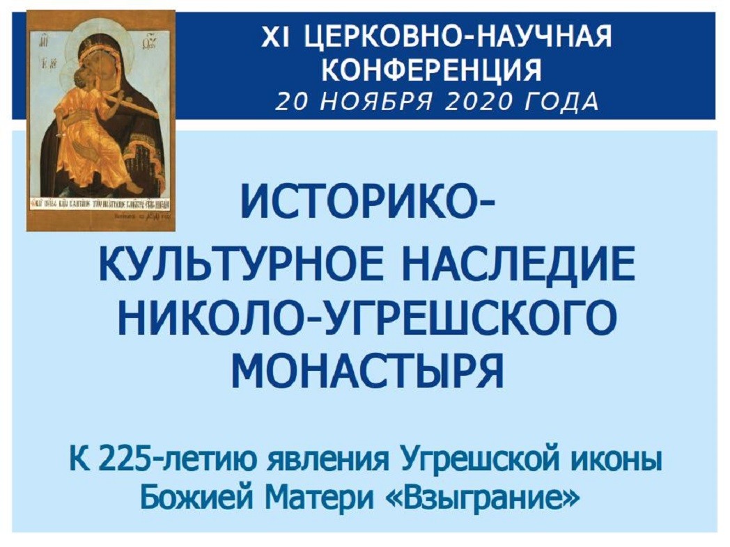 20 ноября 2020 года, в день празднования Угрешской иконы Пресвятой Богородицы «Взыграние», в дистанционном режиме состоялась ежегодная XI церковно-научная конференция «Историко-культурное наследие Николо-Угрешского монастыря: К 225-летию явления Угрешской иконы Божией Матери «Взыграние».