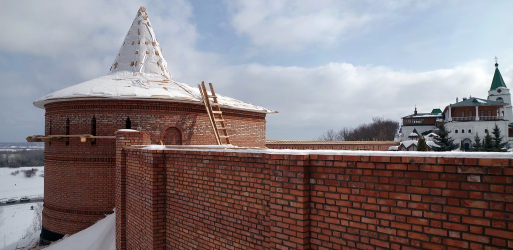 Завершается возрождение северо-западной башни и западного участка стены ограды Вознесенского Печерского мужского монастыря Нижнего Новгорода. Эта башня, расположенная на склоне правого берега Волги, является последней из восстанавливаемых.