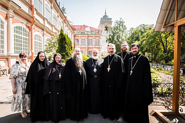 Комиссию сопровождали и помогали в работе заведующий заочным отделением Санкт-Петербургской духовной академии, секретарь курсов базовой подготовки в области богословия для монашествующих Санкт-Петербургской митрополии иерей Алексий Артюхов и методист заочного отделения Санкт-Петербургской духовной академии, методист курсов Н.Ю. Смирнова.