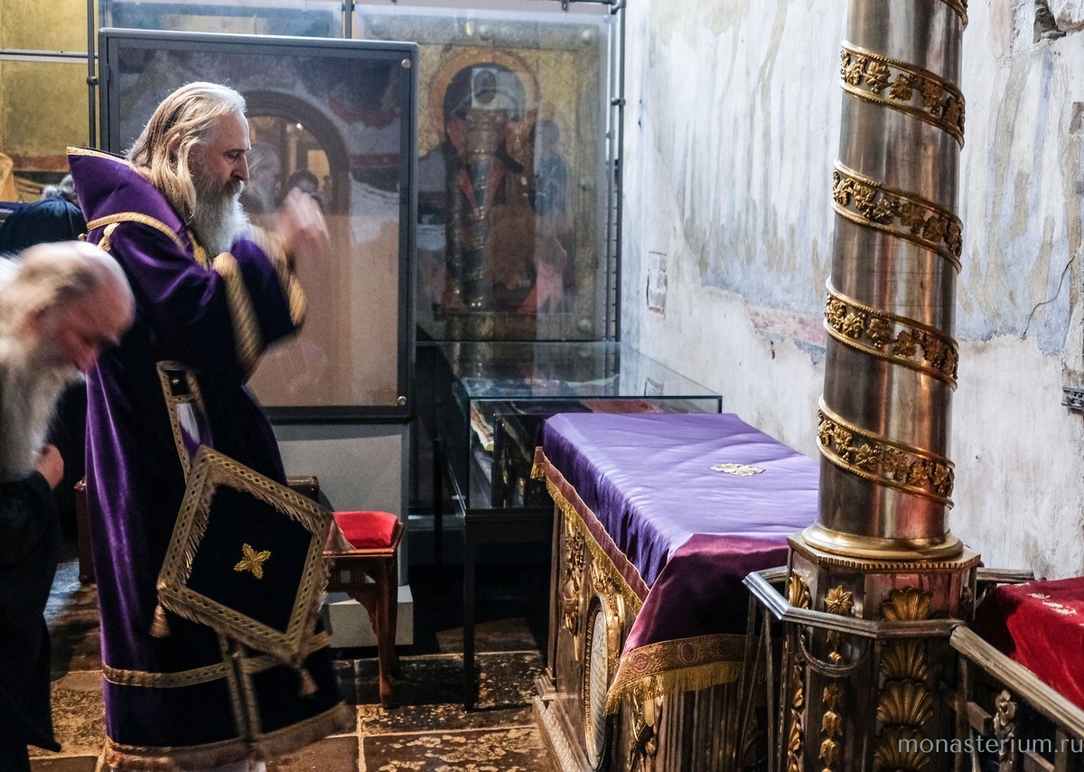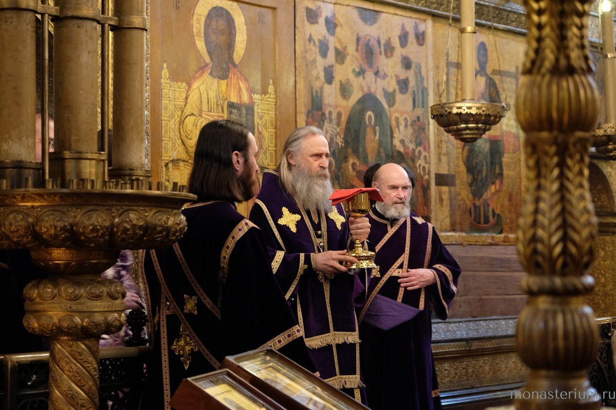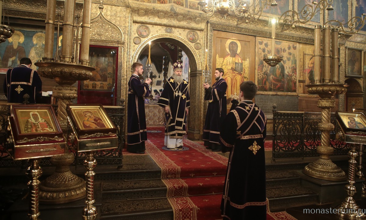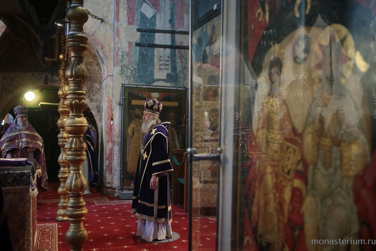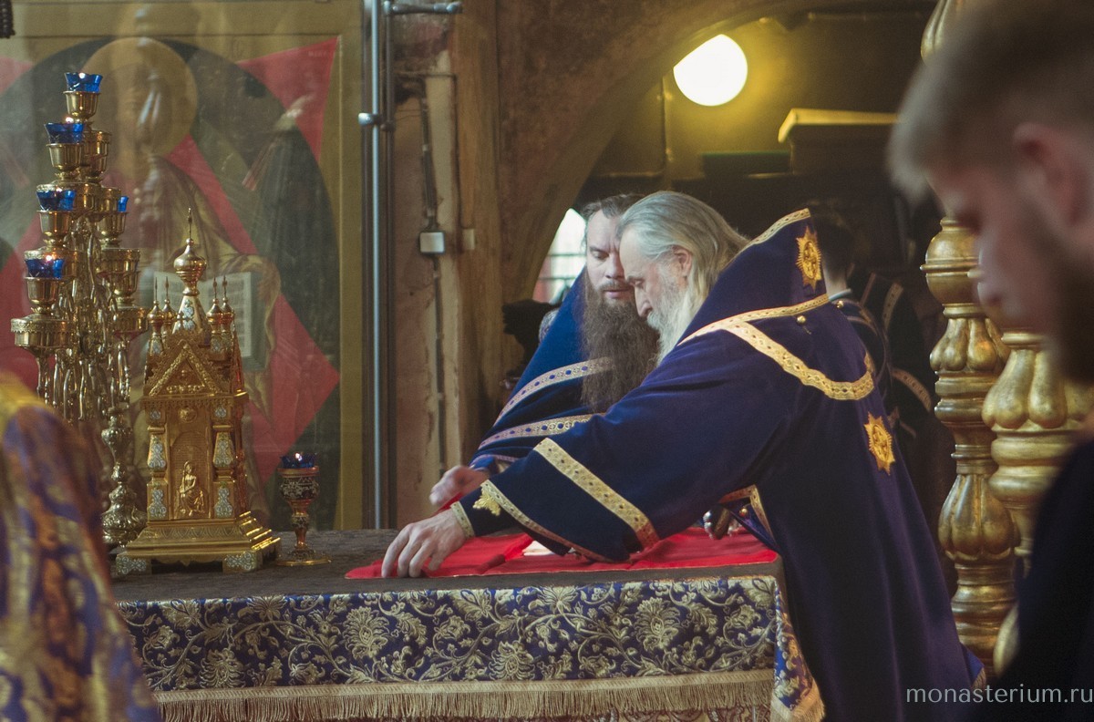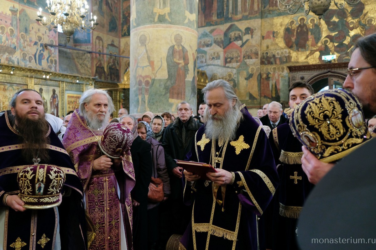 Его Высокопреосвященству сослужили секретарь Патриарха Московского и всея Руси по городу Москве протопресвитер Владимир Диваков и братия Троице-Сергиевой лавры в священном сане; в алтаре молился наместник Андреевского ставропигиального мужского монастыря Москвы епископ Дмитровский Феофилакт.