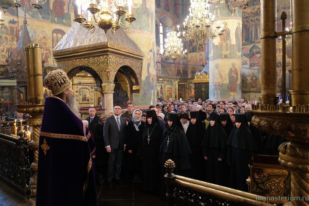 За Литургией молились: заместитель председателя Синодального отдела по монастырям и монашеству, настоятельница Зачатьевского ставропигиального женского монастыря игумения Иулиания (Каледа); настоятельница Богородице-Рождественского ставропигиального женского монастыря игумения Викторина (Перминова); полномочный представитель Президента Российской Федерации в Центральном федеральном округе А.Д. Беглов; советник полномочного представителя Президента Российской Федерации в Центральном федеральном округе М.Н. Белогубова; первый заместитель председателя Московской областной Думы Н.Ю. Чаплин; главный федеральный инспектор по городу Москве В.М. Лавленцев; руководитель Роскомнадзора А.А. Жаров; заместитель министра финансов Российской Федерации А.Ю. Иванов.
