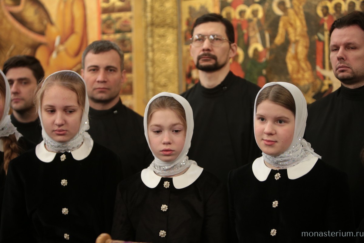 Богослужебные песнопения исполнил хор Московского подворья Троице-Сергиевой лавры.