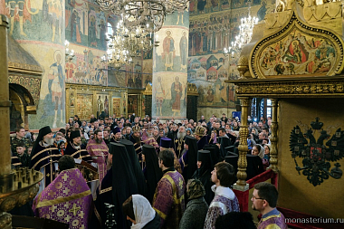 Сегодня Русскую Церковь возглавляет Предстоятель – Святейший Патриарх Московский и всея Руси Кирилл. Жизнь его всецело посвящена Церкви, и тяжек крест его. Потому-то, когда он приезжает в монастыри, в другие епархии, он всегда просит только одного – молитв. Но под молитвой он подразумевает не только слова. Когда Патриарх просит молитв, он просит о единодушии – чтобы мы были единодушны в служении Христу. Чтобы нас ничто не разделяло в этом служении, чтобы мы не искали поводов для распрей и раскола. Мы служим Христу... Единство – это основа церковной жизни. Во все века Первосвятители Московские призывали хранить единство Церкви. Не только на словах, но и внутренней, сердечной, молитвой, понимая, что Сам Господь правит Церковью и каждым из нас. От нас требуется только одно – чтобы мы были едины. Зло, которое всегда было, и есть, и будет, направлено на то, чтобы разъединить, расколоть. А сегодня при тех возможностях, которые имеет злонамеренный человек, можно очень быстро соблазнить любого и бросить тень на любого из нас.