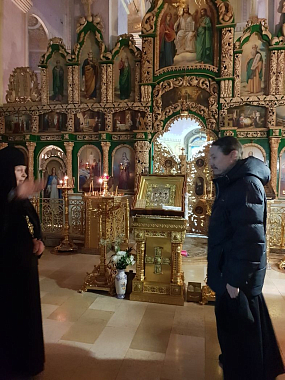 В сопровождении игумении Матроны (Брыксиной) и архимандрита Иосифа гости осмотрели храмы и хозяйственные постройки монастыря. Обзор монастыря завершился совместной трапезой.