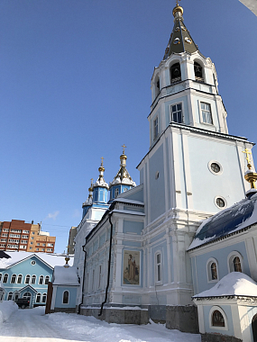 Село Кадомцево (Богородское), вошедшее в черту города Уфы, известно с начала XVII века. Около 1621–1622 гг. здесь была обретена икона Казанской (Богородско-Уфимской) Божией Матери и забил святой ключ, который бьет, не переставая, почти 4 столетия. Явленная на роднике чудотворная икона была перенесена в сельскую Ильинскую церковь, рядом с которой вскоре была срублена Казанско-Богородская деревянная церковь. Царица Небесная через Свою икону не раз спасала Уфу и село Богородское – наиболее известно спасение от Сеитовского бунта в 1670-е гг.