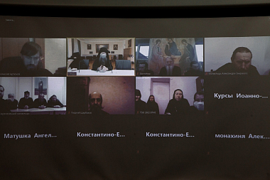 3 ноября 2020 года в профессорской СПбДА посредством видеоконференции на платформе Zoom состоялась встреча членов Комиссии со слушателями курсов, в которой приняли участие насельники следующих обителей: