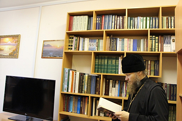 На дополнительной учебной площадке, в Центре подготовки церковных специалистов при кафедральном соборе Святой Живоначальной Троицы, члены комиссии проверили библиотечный фонд и материально-техническое обеспечение курсов.