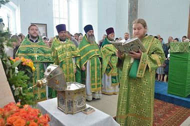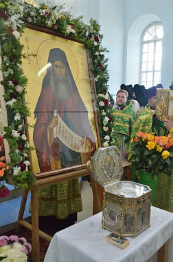 В этот день Божественную литургию в храме Рождества Христова в с. Шовское перед принесенными накануне со Святой Горы Афон святынями – ковчегом с мощами прп. Силуана Афонского и чудотворной иконой Спасителя – возглавил митрополит Липецкий и Задонский Никон.