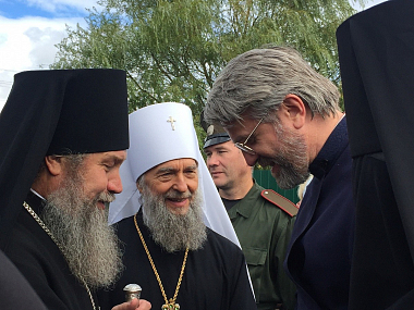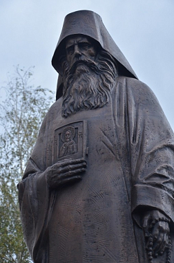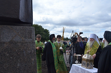 По окончании Литургии у храма состоялся чин освящения памятника старцу Силуану, который совершил митрополит Никон.