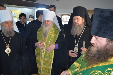 Его Высокопреосвященству сослужили: митрополит Саранский и Мордовский Зиновий; епископ Елецкий и Лебедянский Максим; епископ Скопинский и Шацкий Матфей; настоятель Ново-Казанского собора г. Лебедяни, благочинный Лебедянского церковного округа протоиерей Игнатий Кондратюк; настоятель храма Рождества Христова с. Шовское иерей Николай Молокоедов; духовенство Липецкой митрополии.