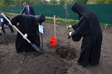 Участниками церемонии на территории мемориального комплекса был заложен яблоневый сад.