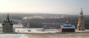 установленные кресты на местах: разрушенного храма Святителя Николая Чудотворца, часовни Казанской иконы Божией Матери, монастырского кладбища.