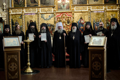 В Преображенской церкви Николаевского монастыря документы о завершении обучения вручены монахам Эмилиану (Федотову), Мелитону (Ефимову), Сисою (Соломенникову), послушникам Олегу (Вострецову) и Олегу (Крушинских).