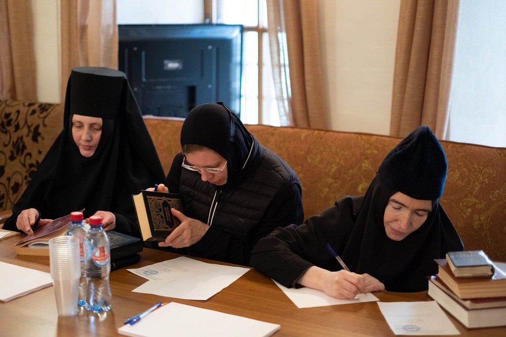 30 мая 2022 г. выездная аккредитационная комиссия в составе наместника Воскресенского Новоиерусалимского ставропигиального монастыря архимандрита Феофилакта (Безукладникова) и насельниц Иоанно-Предтеченского ставропигиального монастыря монахини Анувии (Виноградовой) и монахини Феониллы (Харченко) посетила Свято-Троицкий Ново-Голутвин женский монастырь г. Коломна. Зачет по дисциплине «Священное Писание Нового Завета» сдавали слушатели двух учебных площадок: Ново-Голутвина монастыря и Введенского Владычнего женского монастыря г. Серпухов. В Ново-Голутвином монастыре на протяжении трех лет обучались сестры Ново-Голутвина и Казанского женских монастырей Коломенской епархии; во Владычнем монастыре – сестры Владычнего, Белопесоцкого женских монастырей и Серафимо-Знаменского скита Подольской епархии. По итогам работы комиссии все 50 слушателей обеих площадок успешно прошли итоговую аттестацию.