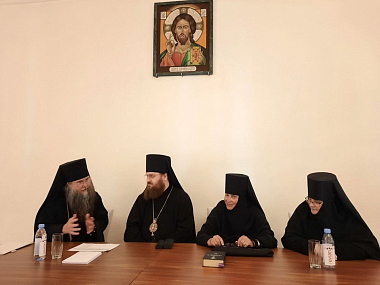 По окончании зачета председатель выездной комиссии архимандрит Феофилакт (Безукладников) встретился с руководителем Курсов, викарием Митрополита Крутицкого и Коломенского, ректором Коломенской духовной семинарии епископом Зарайским Константином. Владыка рассказал о функционировании Курсов и поделился своими соображениями о дальнейшей их работе. На встрече присутствовали игумения Свято-Троицкого Ново-Голутвина монастыря Ксения (Зайцева) и игумения Успенского Брусенского женского монастыря г. Коломна Екатерина (Варфоломеева).