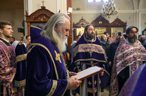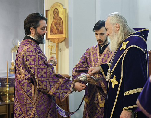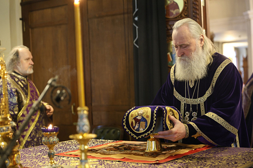 Его Высокопреосвященству сослужили старший священник и духовник монастыря протоиерей Артемий Владимиров, клирики обители.