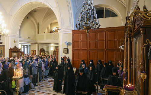 За богослужением молились настоятельница Алексеевского монастыря игумения Ксения (Чернега), настоятельница Богородице-Рождественского ставропигиального женского монастыря игумения Викторина (Перминова), сестры, прихожане и гости обители.