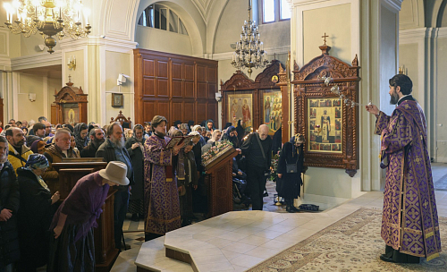 По окончании Литургии было совершено славление и молитва перед иконой преподобного Алексия, человека Божия.