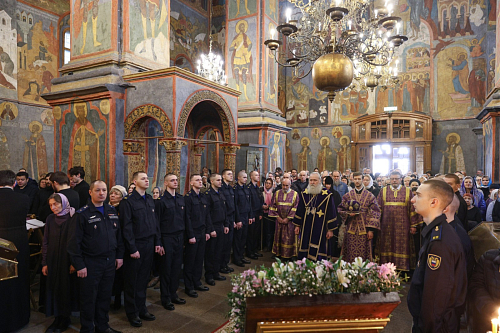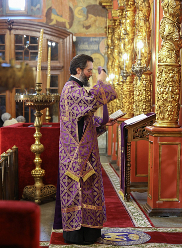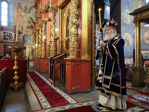 Его Высокопреосвященству сослужили секретарь Патриарха Московского и всея Руси по г. Москве протопресвитер Владимир Диваков, настоятель Патриаршего подворья храмов в Зарядье г. Москвы протоиерей Вячеслав Шестаков, клирики города Москвы.