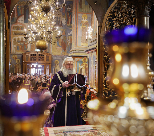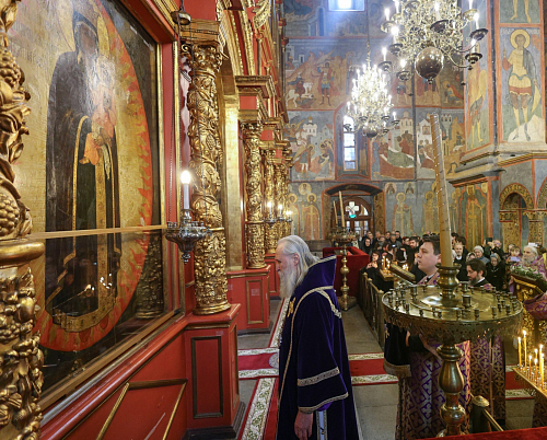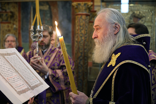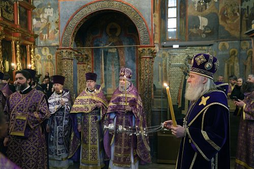 19 марта 2025 года, в праздник иконы Божией Матери «Благодатное Небо», председатель Синодального отдела по монастырям и монашеству, наместник Донского ставропигиального мужского монастыря митрополит Каширский Феогност совершил полиелейную утреню и Литургию Преждеосвященных Даров в Архангельском соборе Московского Кремля.