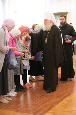 Затем митрополит Феооност встретился с сестрами, готовящимися принять монашеский и иноческий постриг, и кандидатами на зачисление в монастырь.