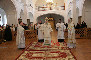 По окончании богослужения митрополит Феогност передал игумении Сергии (Щербаковой) Патриаршее поздравление с 10-летием настоятельских трудов в Казанской Амвросиевской ставропигиальной пустыни.