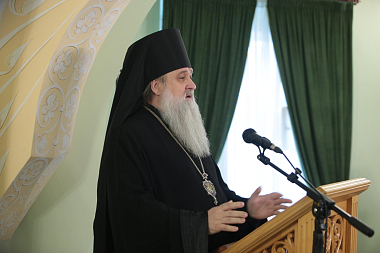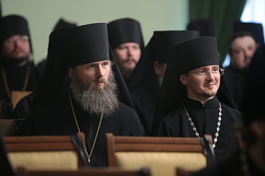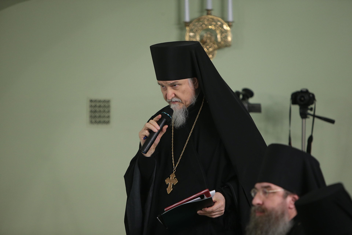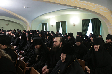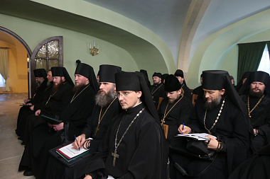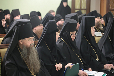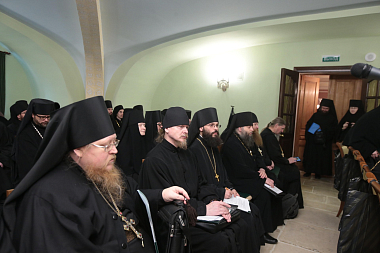 Во вступительном слове архиепископ Феогност передал собравшимся благословение Святейшего Патриарха Московского и всея Руси Кирилла и обозначил две основные задачи работы собрания: подготовка к ХXIV Международным Рождественским чтениям и определение путей взаимодействия Синодального отдела по монастырям и монашеству с епархиальными монастырями.