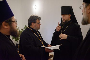 В завершение инспекционной работы члены комиссии встретились с епископом Алапаевским и Ирбитским Сергием, с которым обсудили актуальные вопросы организации работы курсов в монастырях. Члены комиссии передали владыке Сергию учебно-методические комплексы дисциплин базовой части курсов, изданные в виде приложения к журналу Синодального отдела по монастырям и монашеству «Монастырский вестник».