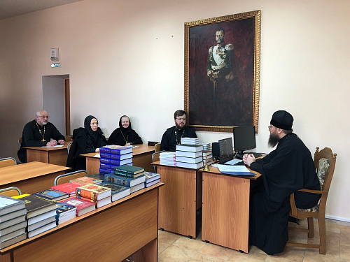 Владыке архиепископу и каждой обители члены выездной группы передали в дар Учебно-методические комплексы дисциплин базовой подготовки в области богословия монашествующих, изданные в виде приложения к журналу Синодального отдела по монастырям и монашествующим «Монастырский вестник».