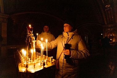 Богослужебные песнопения исполнил хор Патриаршего собора Воскресения Христова.