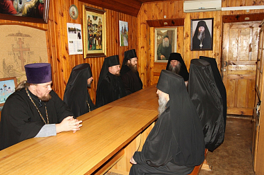 28 сентября в Свято-Троицком мужском монастыре г. Алатыря состоялась встреча комиссии с епископом Алатырским и Порецким Феодором. В ходе беседы была отмечена важность богословского образования насельников монастырей и актуальность открытия данных курсов. Затем в трапезной монастыря члены комиссии встретились с преподавателями курсов этой учебной площадки. На встрече присутствовали наместник Свято-Троицкого мужского монастыря игумен Софроний (Дубровин), благочинный Свято-Троицкой обители иеромонах Лазарь (Белянин), настоятельница Киево-Николаевского Новодевичьего женского монастыря г. Алатыря игумения Елисавета (Ванькина) с сестрами и несколько насельниц женского подворья Свято-Троицкой мужской обители. В Рождественском скиту комиссией была проведена беседа с некоторыми учащимися из братии монастыря.