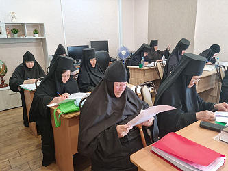 18 июня зачет по дисциплине «Священное Писание Нового Завета» состоялся в Тихвинском Богородицком женском монастыре в городе Цивильске. Обитель и дополнительная учебная площадка относятся к Чебоксарской епархии. Зачет принимали члены выездной группы, руководитель курсов и преподаватель предмета иерей Евгений Баранов, клирик Тихвинского Богородицкого женского монастыря в городе Цивильске. Зачет успешно сдали 16 насельниц обители вместе матушкой настоятельницей игуменией Ниной (Волковой). Члены комиссии посетили монастырский собор Тихвинской иконы Божией Матери и поклонились главной реликвии обители – списку чудотворной Тихвинской иконы Богородицы. В этом монастыре выездная группа в учебном классе проверила наличие основной литературы курсов и оборудование для дистанционной работы.