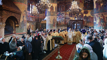 18 октября 2023 года, в день памяти святителей Московских Петра, Феогноста, Алексия, Киприана, Фотия, Ионы, Геронтия, Иоасафа, Макария, Филиппа, Иова, Ермогена, Тихона, Петра, Филарета, Иннокентия и Макария, председатель Синодального отдела по монастырям и монашеству, наместник Донского ставропигиального мужского монастыря митрополит Каширский Феогност совершил утреню с полиелеем и Божественную литургию в Патриаршем Успенском соборе Московского Кремля.
