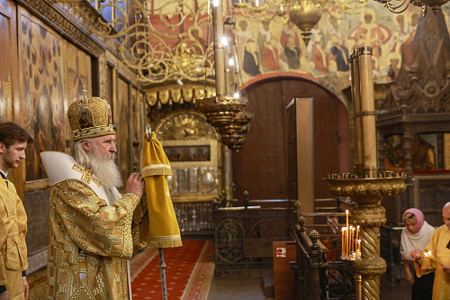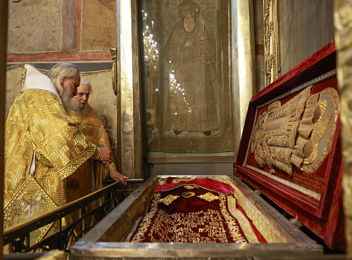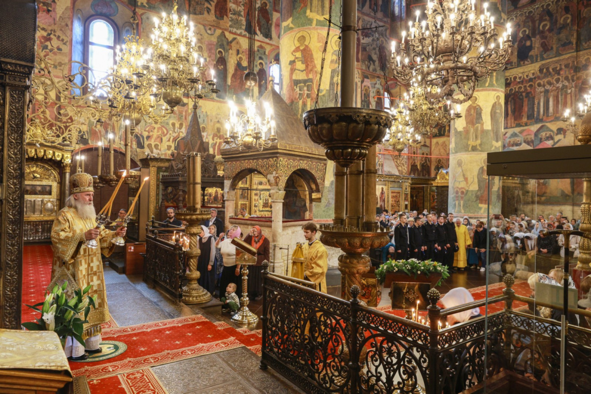 По окончании Литургии митрополит Феогност совершил славление перед ракой с мощами святителя Ионы, митрополита Московского и всея Руси, чудотворца.