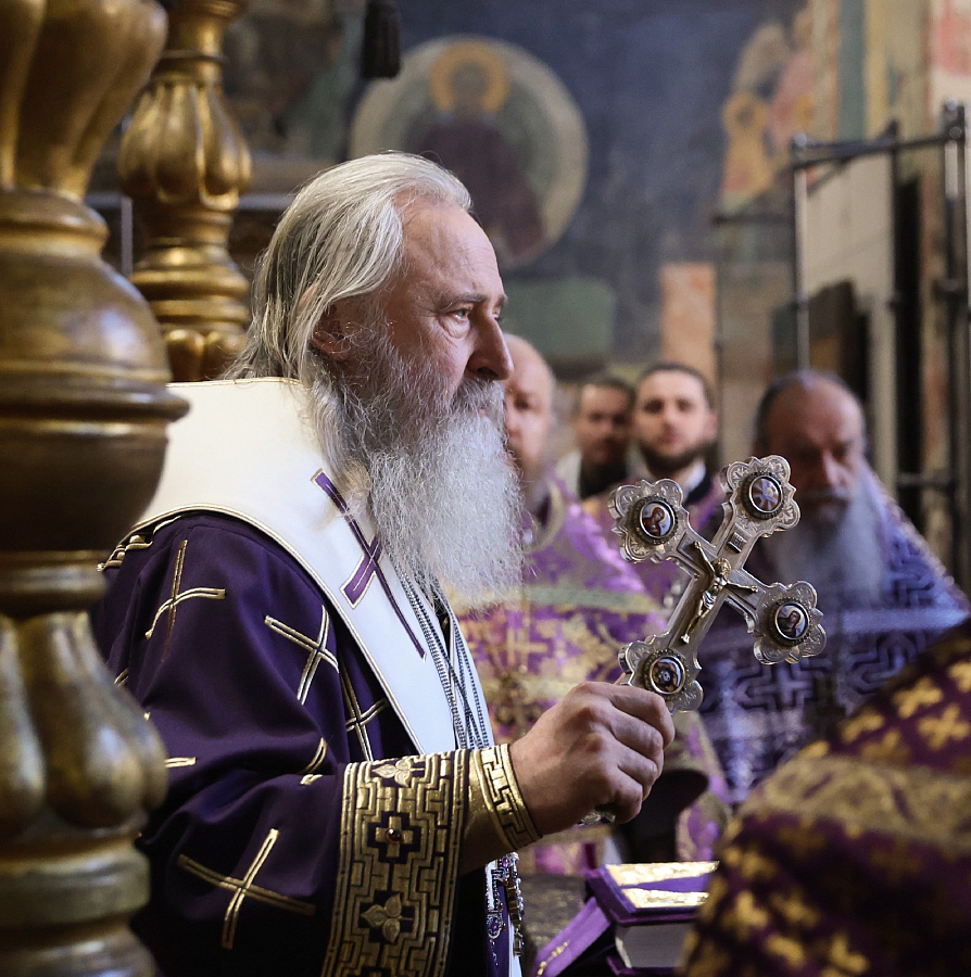Его Высокопреосвященству сослужили: секретарь Патриарха Московского и всея Руси по г. Москве протопресвитер Владимир Диваков; ризничий Патриаршего Успенского собора и храмов Московского Кремля, настоятель Патриаршего подворья храмов в Зарядье г. Москвы протоиерей Вячеслав Шестаков; заместитель председателя СОММ архимандрит Стефан (Тараканов); наместник Воскресенского Ново-Иерусалимского ставропигиального монастыря архимандрит Феофилакт (Безукладников); наместник Саввино-Сторожевского ставропигиального монастыря архимандрит Павел (Кривоногов); наместник Андреевского ставропигиального монастыря г. Москвы игумен Дионисий (Шлёнов); клирики города Москвы; братия обителей в священном сане.