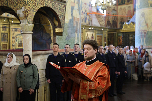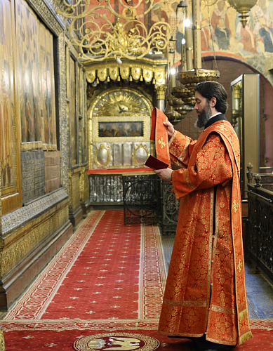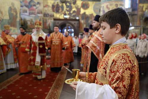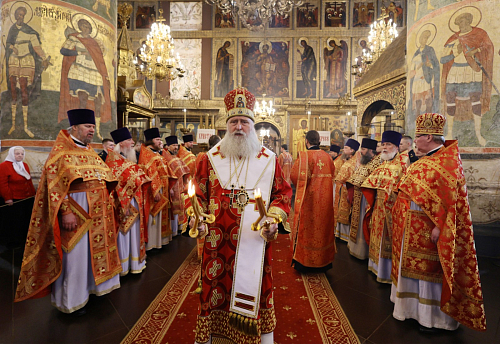Его Высокопреосвященству сослужили ризничий Патриаршего Успенского собора и храмов Московского Кремля, настоятель Патриаршего подворья храмов в Зарядье г. Москвы протоиерей Вячеслав Шестаков, духовенство г. Москвы.