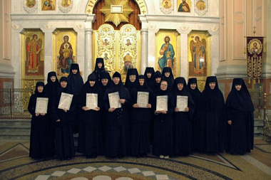 Всего трехлетнюю очную программу обучения на курсах базовой подготовки в области богословия для монашествующих Русской Православной Церкви на базе Религиозной организации «Иоанно-Предтеченский ставропигиальный женский монастырь Русской Православной Церкви (Московский Патриархат)» успешно завершили 53 слушательницы: