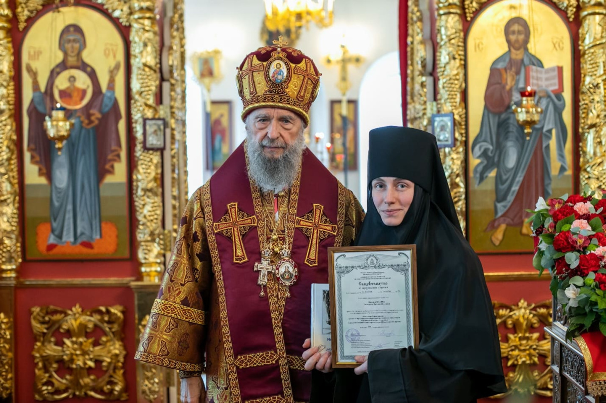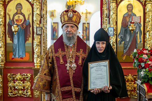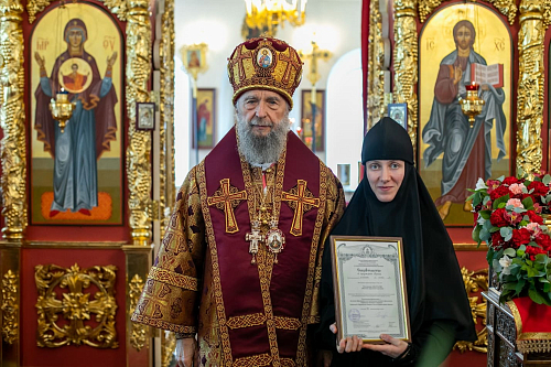 По окончании Литургии состоялось торжественное вручение выпускникам свидетельств об окончании курсов базовой подготовки в области богословия для монашествующих Русской Православной Церкви, которые проходят в Саранской духовной семинарии. Митрополит Зиновий вручил свидетельства об окончании курсов трем насельницам Свято-Варсонофиевского женского монастыря Краснослободской и Темниковской епархии Саранской и Мордовской митрополии Русской Православной Церкви. Выпускницы успешно прошли обучение на курсах и показали отличные результаты освоения дисциплин во время проведения аттестации по предметам Учебного плана.