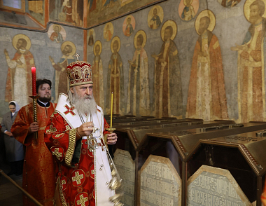 Его Высокопреосвященству сослужили настоятель храмов Патриаршего подворья в Зарядье г. Москвы, ризничий Патриаршего Успенского собора и храмов Московского Кремля протоиерей Вячеслав Шестаков, московское духовенство.