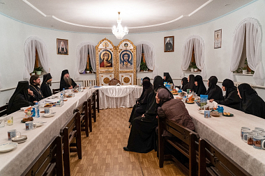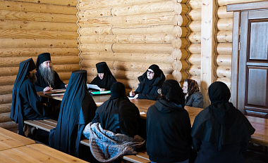 На встрече обсуждались вопросы организации курсов, учебного процесса, методики преподавания всех предметов. Председатель комиссии архимандрит Феофилакт особое внимание в беседе уделил целям и задачам богословского образования как для самих монашествующих, так и для тех, кто приходит в монастырь. Важно, чтобы все слушатели курсов могли получить духовное наставление, основанное на Священном Писании и святоотеческом опыте.