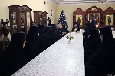 13 января выездная группа посетила Свято-Успенский женский монастырь г. Оренбурга. Здесь была проведена беседа с настоятельницей игуменией Флорой (Новицкой), сестрами обители и наместником Свято-Андреевского мужского монастыря Оренбургской епархии игуменом Евлогием (Савиным).
