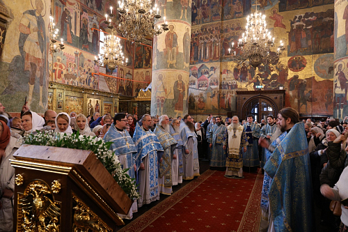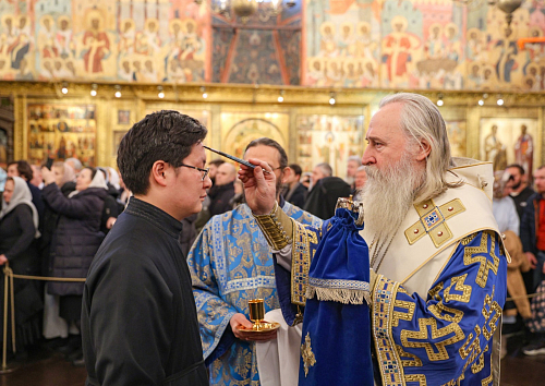 15 февраля 2025 года, в праздник Сретения Господа Бога и Спаса нашего Иисуса Христа, председатель Синодального отдела по монастырям и монашеству, наместник Донского ставропигиального мужского монастыря митрополит Каширский Феогност возглавил праздничную утреню и Божественную литургию в Патриаршем Успенском соборе Московского Кремля.