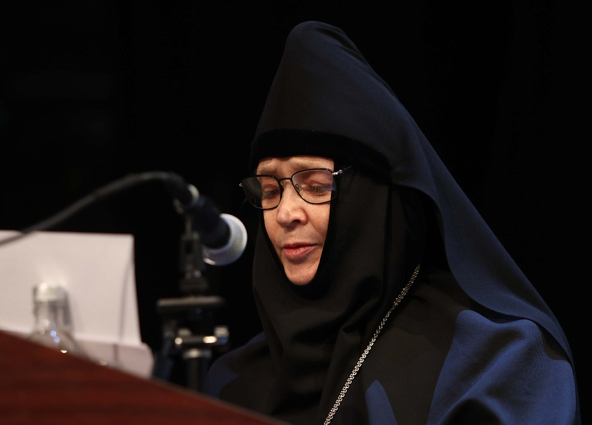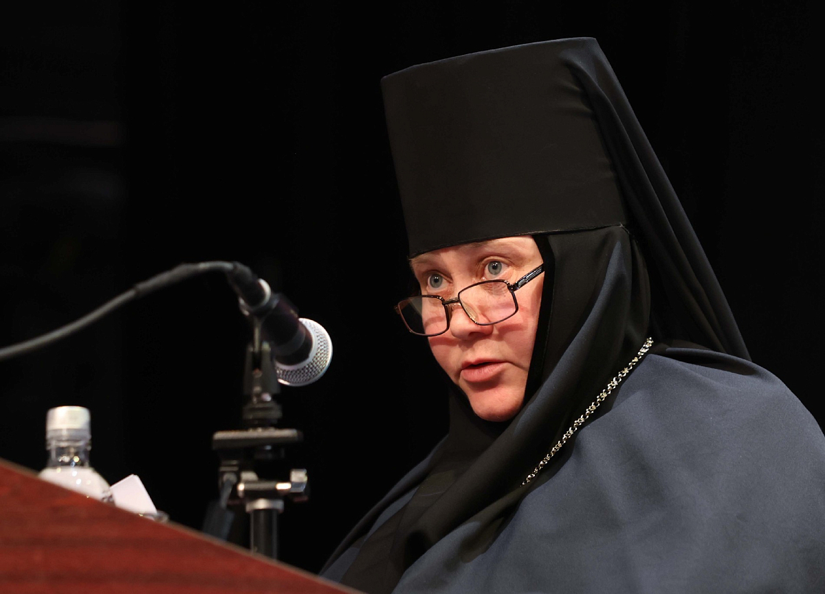 Игумения Иулиания (Каледа) в докладе «Подведение итогов региональных круглых столов “Почитание местных подвижников благочестия, новомучеников и исповедников Церкви Русской в монастырях”» напомнила собравшимся о том, что Святейший Патриарх Кирилл придает большое значение почитанию подвига новомучеников и исповедников Церкви Русской для духовно-нравственного становления верующих, сохранения исторической памяти, осуществления преемства опыта жизни по вере, доказанного стоянием за Христа, даже ценой собственной жизни. Матушка также сообщила о том, что в прошедшем 2023 году по благословению Святейшего Патриарха региональные заседания круглых столов на тему «Почитание местных подвижников благочестия и новомучеников и исповедников Церкви Русской в монастырях» прошли в Ивановской, Тамбовской, Смоленской, Белгородской, Астраханской, Санкт-Петербургской, Иркутской, Нижегородской, Екатеринбургской, Хабаровской митрополиях и Луганской епархии. Синодальным отделом по монастырям и монашеству были проведены круглый стол для ставропигиальных монастырей и монастырей Московской митрополии и собрание с епархиальными ответственными за монастыри, где участники поделились опытом работы по увековечиванию памяти исповедников веры Христовой. На основании обобщенного опыта были выделены особо важные направления деятельности по почитанию подвига новомучеников, исповедников и подвижников благочестия и сформулированы рекомендации для работы, проводимой монастырями по увековечиванию памяти насельников святых обителей, подвизавшихся в период гонений на Церковь.