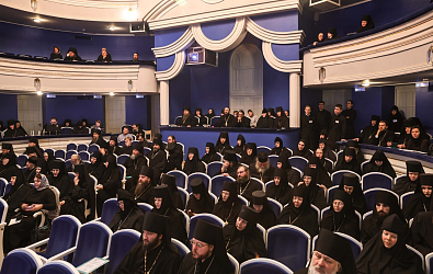 Затем Высокопреосвященный владыка зачитал итоговый документ о работе монашеского направления и поблагодарил всех докладчиков и аудиторию чтений.