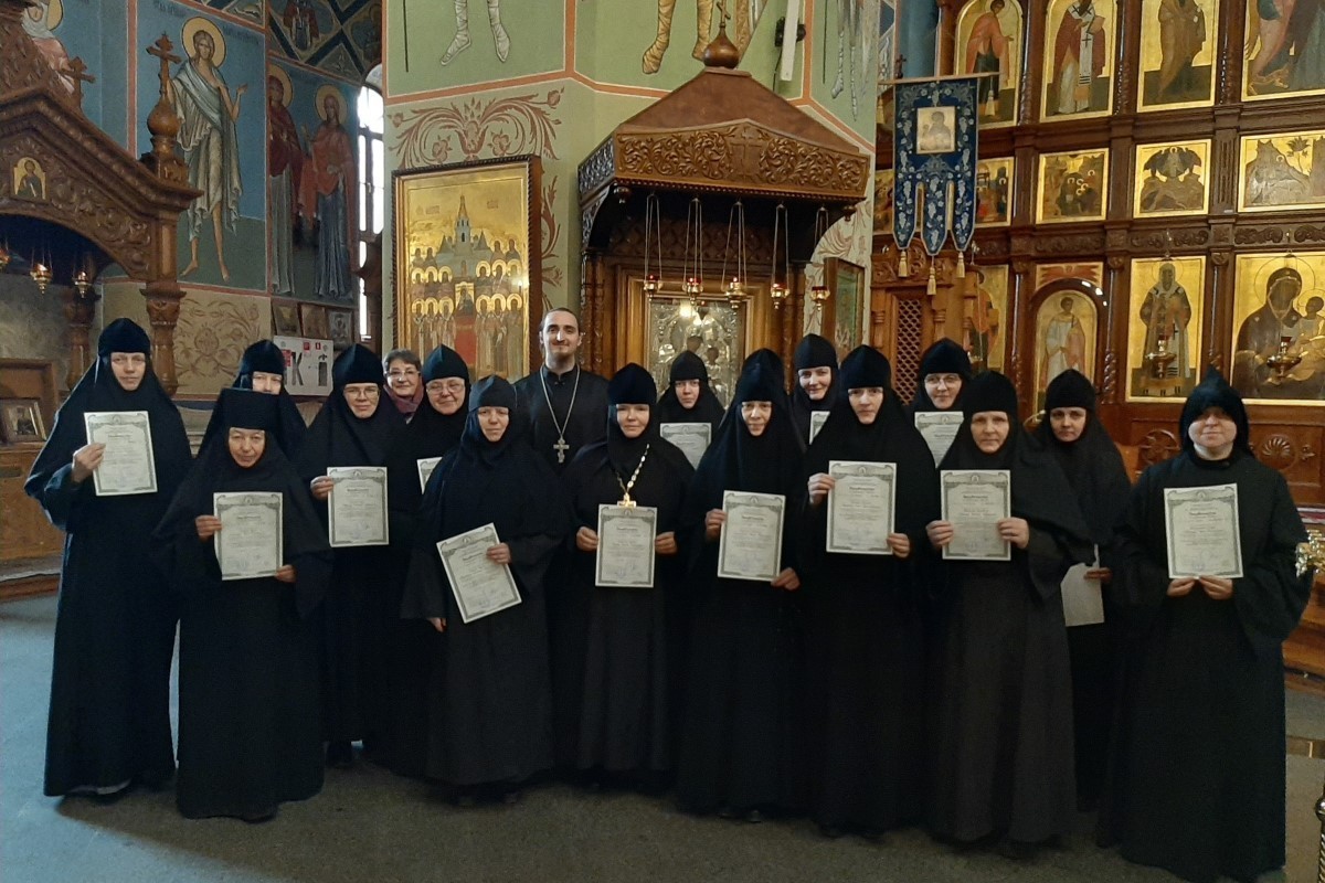 18 насельниц ‒ настоятельница Иверского монастыря игумения Любовь (Чусова) и сестры обители получили удостоверения об окончании трехлетней программы обучения.