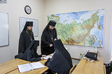 В состав выездной экспертной группы вошли: председатель Межведомственной комиссии по вопросам образования монашествующих Русской Православной Церкви игумен Петр (Еремеев); монахиня Анувия (Виноградова), кандидат исторических наук, секретарь Межведомственной комиссии по вопросам образования монашествующих, казначея Иоанно-Предтеченского ставропигиального женского монастыря г. Москвы; монахиня Феонилла (Харченко), помощница секретаря Межведомственной комиссии по вопросам образования монашествующих, насельница Иоанно-Предтеченского ставропигиального женского монастыря г. Москвы.