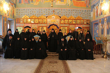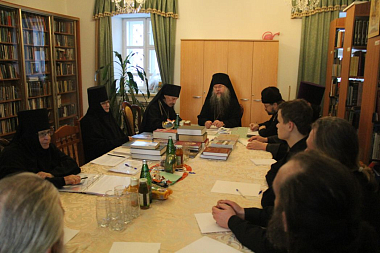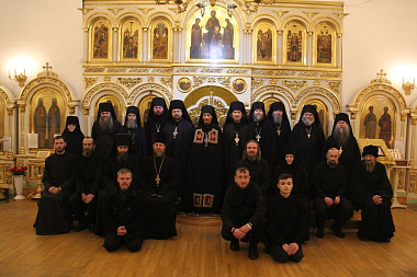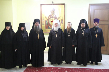 28 ноября в первой половине дня выездная экспертная комиссия прибыла в Богородице-Рождественский (Ильинский) женский монастырь г. Тюмени. Членов комиссии встречала игумения Нина (Схулухия), настоятельница монастыря. Председателем выездной экспертной комиссии архимандритом Феофилактом (Безукладниковым) в архондарике обители была проведена беседа о цели и задачах реализуемого стандарта базовой богословской подготовки монашествующих с игуменией Ниной и слушательницами курсов. На встрече присутствовали все насельницы монастыря, а также преподаватель курсов архимандрит Зосима (Горшунов), наместник Свято-Троицкого мужского монастыря г. Тюмени. После беседы с матушкой и сестрами состоялась проверка библиотечного фонда основной литературы для курсов и материально-технической базы данной учебной площадки. Игумения Нина рассказала членам комиссии об истории и возрождении монастыря, показала храм обители, вид на реку Туру и памятник святым Царственным страстотерпцам.