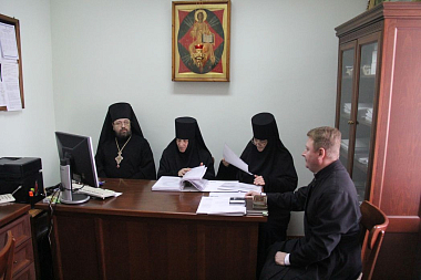В состав выездной комиссии вошли: архимандрит Феофилакт (Безукладников), заместитель председателя Межведомственной комиссии по вопросам образования монашествующих, член Научно-методического совета, наместник Воскресенского Ново-Иерусалимского ставропигиального мужского монастыря – председатель выездной комиссии; монахиня Анувия (Виноградова), кандидат исторических наук, секретарь Межведомственной комиссии по вопросам образования монашествующих, казначея Иоанно-Предтеченского ставропигиального женского монастыря г. Москвы; монахиня Феонилла (Харченко), помощница секретаря Межведомственной комиссии по вопросам образования монашествующих, насельница Иоанно-Предтеченского ставропигиального женского монастыря.