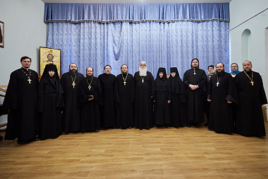 20 февраля в Томской духовной семинарии состоялось общее собрание наместников, представителей монастырей и преподавателей курсов, посвященное открытию богословских курсов для монашествующих Томской митрополии. В ходе встречи обсуждались вопросы организации работы курсов на образовательных площадках. Методическим центром и базовой учебной площадкой курсов станет Томская духовная семинария. Руководитель экспертной группы иеромонах Аполлинарий (Панин) представил собравшимся официальные документы, касающиеся образования монашествующих, озвучил основные требования и ознакомил преподавателей с единой программой курсов, включающей восемь предметов. Монашествующие Томской митрополии будут изучать также дополнительный предмет – Историю Православия в Сибири.
