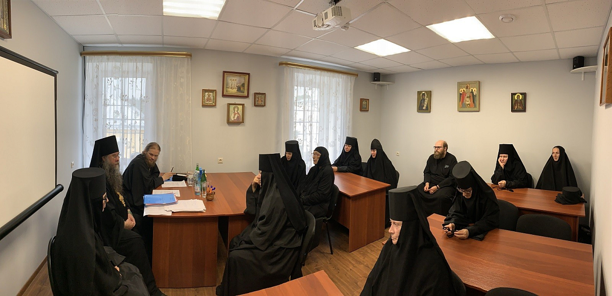 Комиссия провела экспертную оценку контроля реализации программы базовой подготовки в области богословия для монашествующих Троице-Одигитриевского ставропигиального женского монастыря Зосимова пустынь посредством аттестации 9 слушательниц на итоговом междисциплинарном зачете, включающем вопросы по Священному Писанию Ветхого и Нового Заветов и Православному вероучению и основам Социальной концепции Русской Православной Церкви.